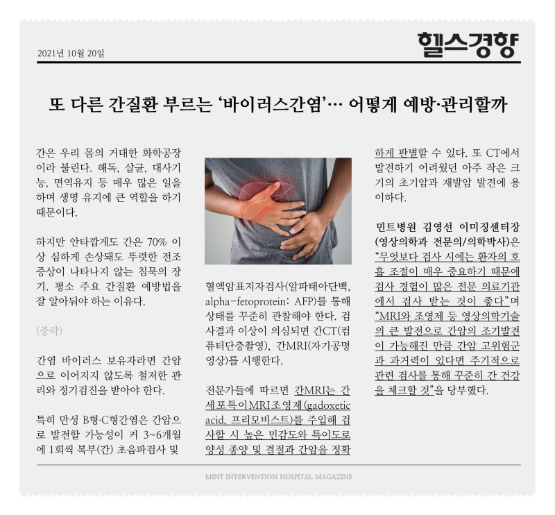 중국의 간암 사망률은 10만 명당 약 20.7명으로 폐암 다음으로 높은 암 사망률이다. 34.8명이 폐암에 걸렸습니다. 통계청에 따르면 간암은 특히 경제활동인구인 40~50대에서 암 사망률이 가장 높다. 그렇기 때문에 간암은 우리가 항상 경계해야 하는 가장 치명적인 질병 중 하나입니다.