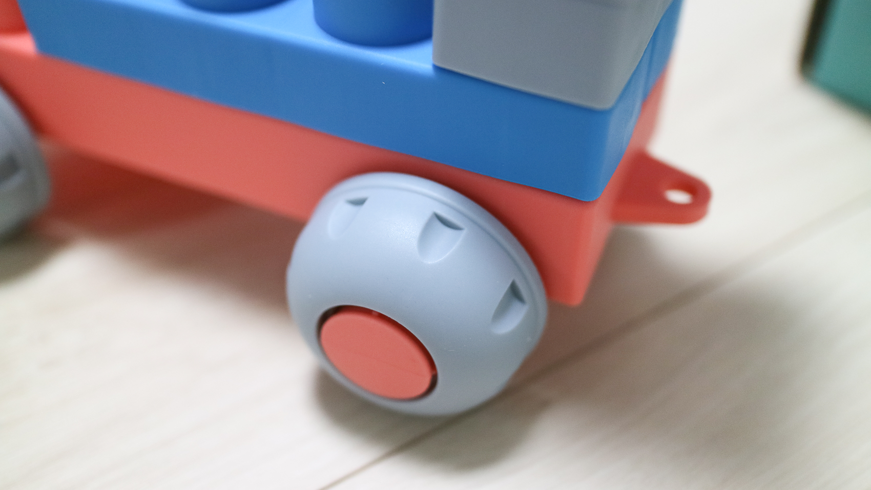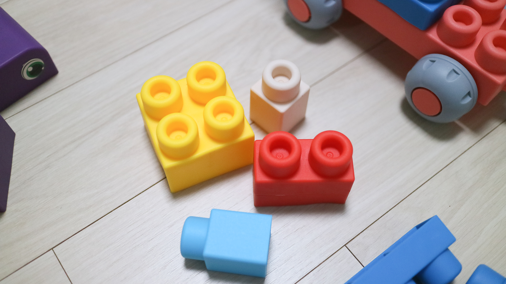 제가 막(?) 만든 바퀴달린 생명체 ㅎㅎ. 다양한 블록 구성으로 만들 수 있기 때문에 영유아들이 다양한 재미를 느낄 수 있습니다. 아직 1살인 아들에게는 아직 이르지만 입에 딱 맞기 때문에 소프트 블록을 잡고 던지기에 안성맞춤이다.