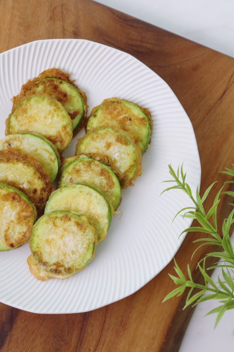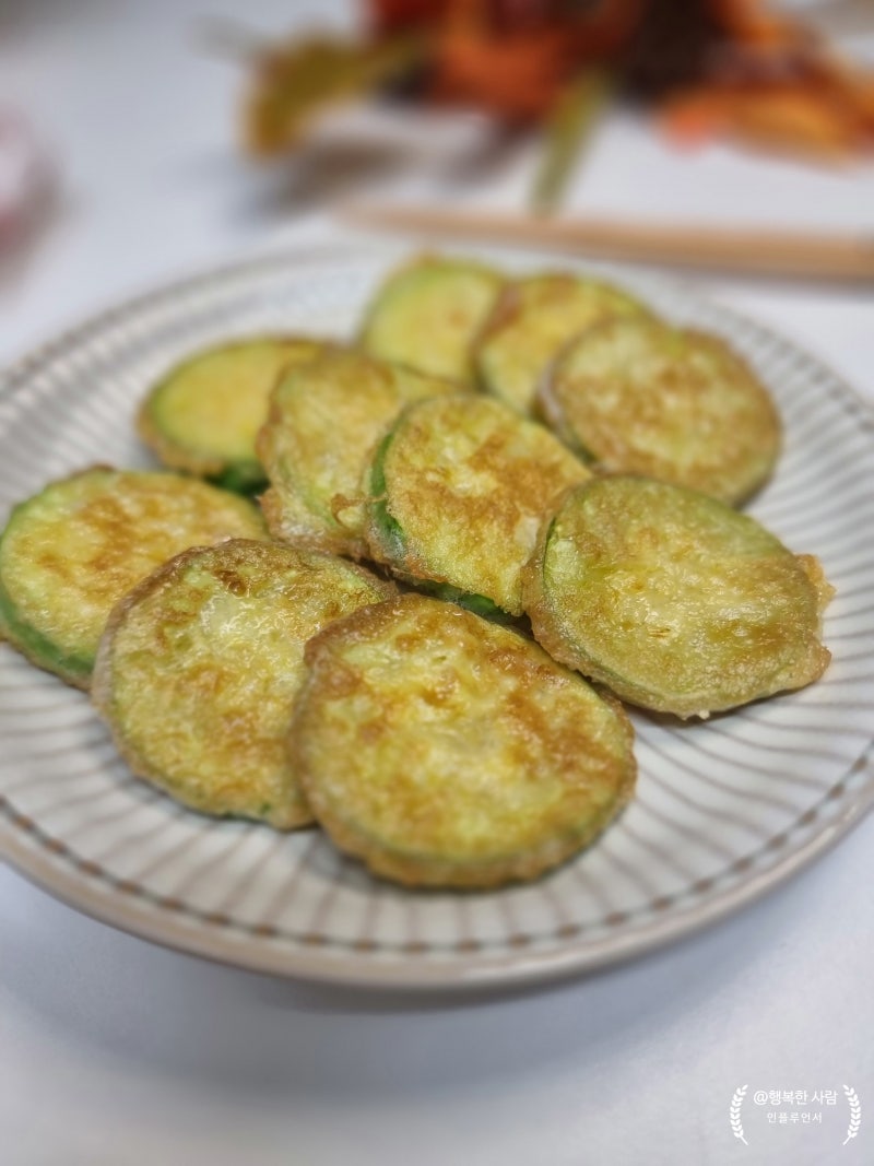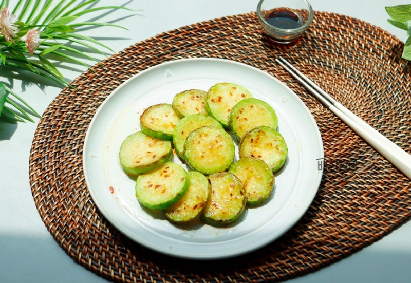 4mm 정도의 두께로 균일하게 썬 애호박전을 만들고, 수분 함량이 높기 때문에 소금에 절여 수분을 살짝 제거한 뒤 밀가루와 계란물을 입혀 약불에서 20~30분까지 천천히 구워주면 달콤하고 부드러운 애호박전을 만들 수 있습니다. 황금빛 갈색.
