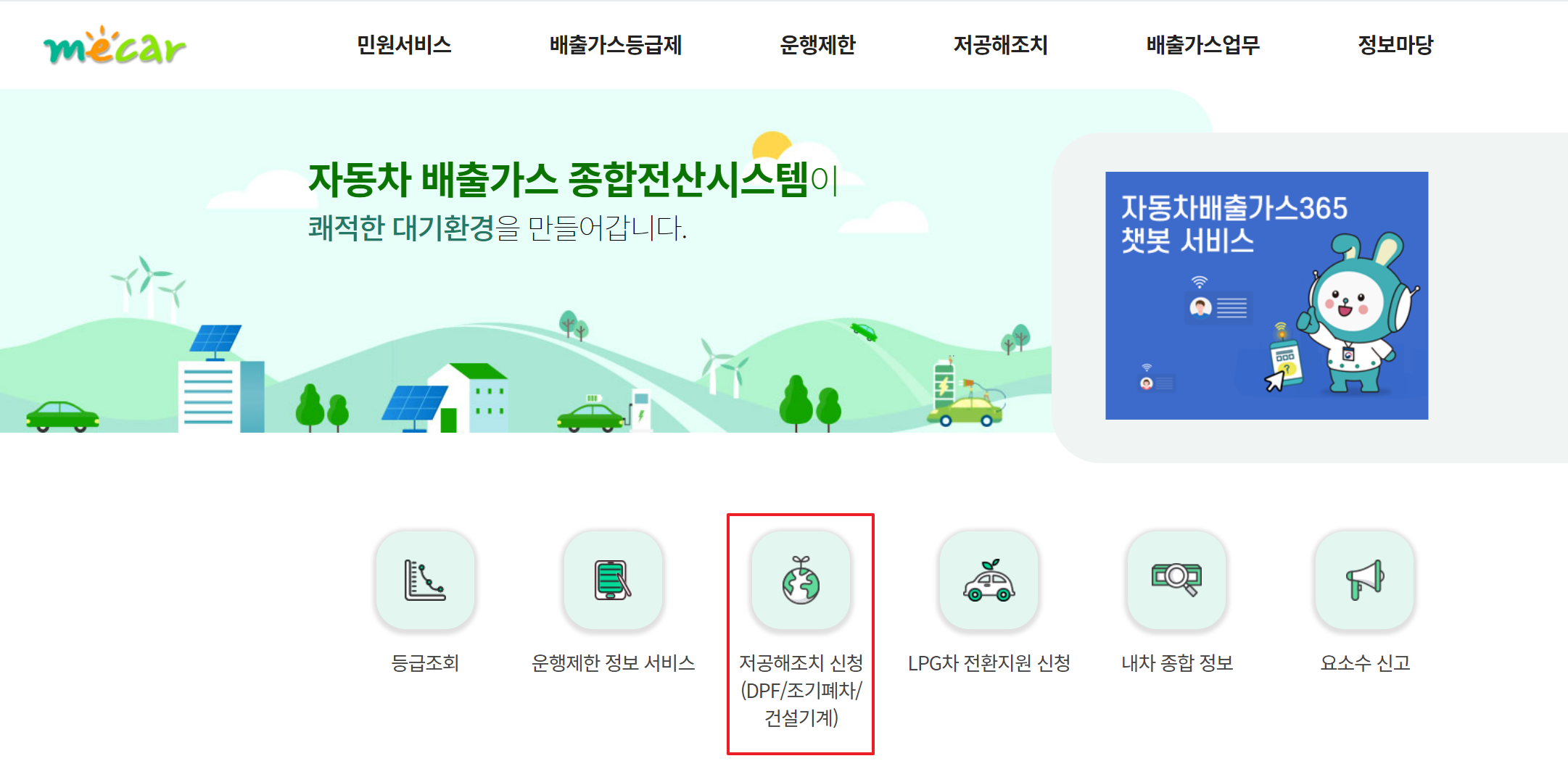 노후 디젤 자동차 등급이 4-5인 차량은 웹사이트에서 폐기 프리미엄을 신청할 수 있습니다. “저공해대책 신청(DPF / 조기집진 / 건설기계)” 버튼을 클릭합니다.제발.